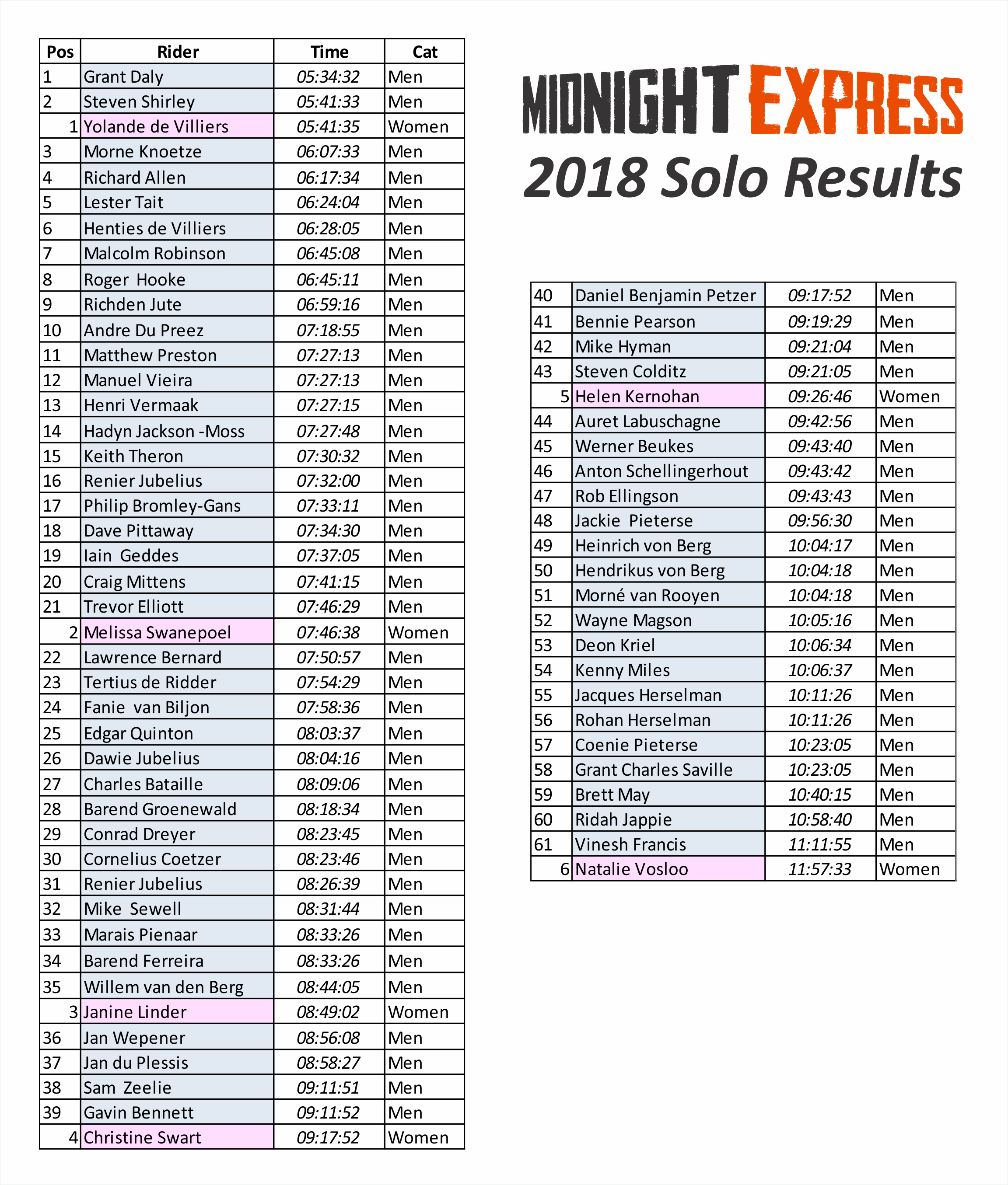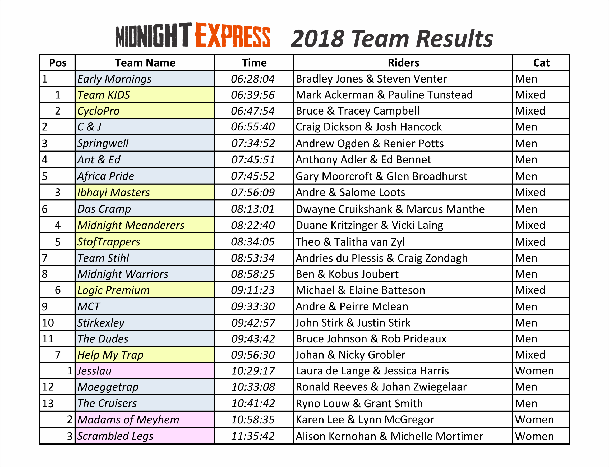 2019 Podium Results Jan 2019 Overall Results2018 Results